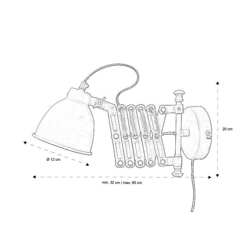 El aplique industrial Borani es de color negro y está de hecha de metal. El aplique industrial se suministra sin una fuente de luz correspondiente. Esta lámpara debe tener una fuente de luz con casquillo E14 y la potencia máxima de la fuente de luz no debe exceder los 40W.