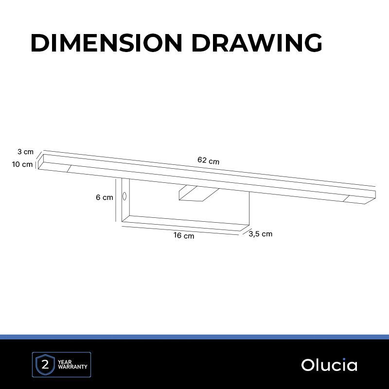 • 16 cm largo, 5,5 cm ancho y 62 cm alto