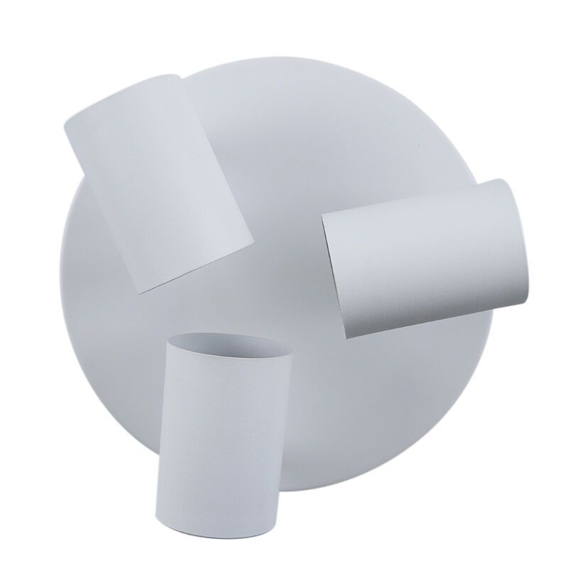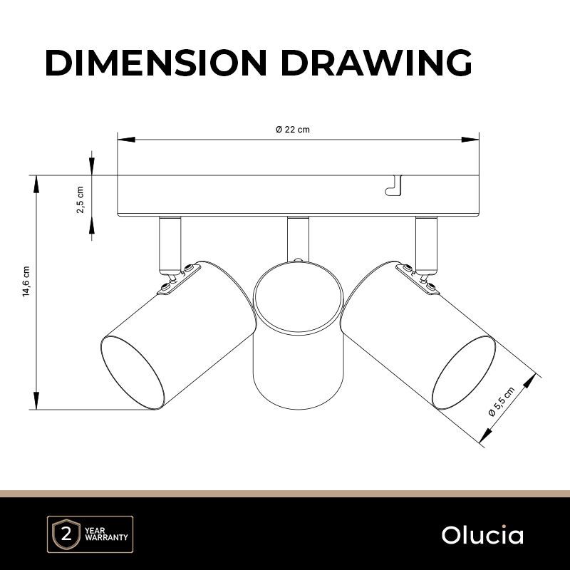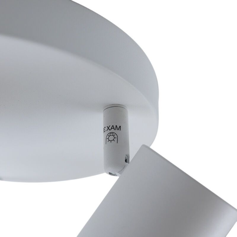 El foco de techo moderna Elena es de color blanco y está de hecha de metal. El foco de techo moderna se suministra sin fuentes de luz a juego. Esta lámpara necesita 3 fuentes de luz con casquillos GU10. La potencia máxima de las fuentes de luz no debe exceder los 35W por lámpara.
