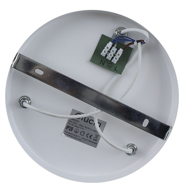 Información de producto Potencia máxima 35 Voltaje de suministro 220-240V Número de luces 3 Tipo de casquillo GU10 Información de producto Incluyendo luz No Anchura en cm 22 Anchura de placa de montaje 22 Diámetro en cm 22 Diámetro de placa de montaje 22 Altura en cm 14.6 Altura de placa de montaje 2.5 Longitud en cm 25 Regulable Si (no incluido) Garantía 2 años Grado de protección IP IP20 (a prueba de polvo) Color Blanco Material Metal Con interruptor No Con cable y enchufe No Estilo Moderno Número de articulo Q52440 - Inicio