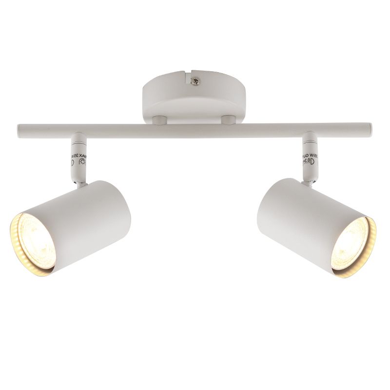 El foco de techo moderna Elena es de color blanco y está de hecha de metal. El foco de techo moderna se suministra sin fuentes de luz a juego. Esta lámpara necesita 2 fuentes de luz con casquillos GU10. La potencia máxima de las fuentes de luz no debe exceder los 35W por lámpara.
