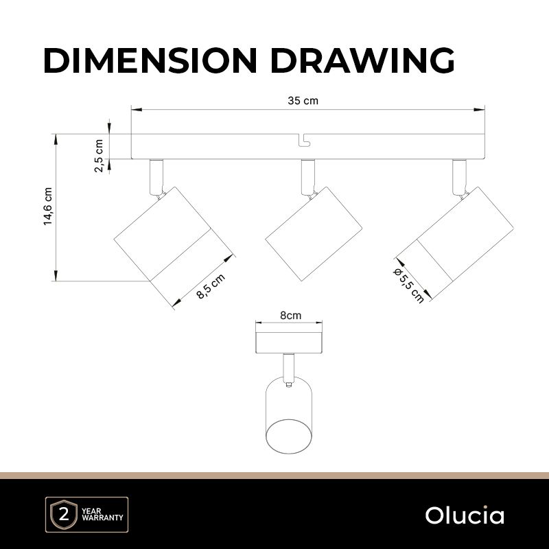 El foco de techo moderna Elena es de color bronce y está de hecha de metal. El foco de techo moderna se suministra sin fuentes de luz a juego. Esta lámpara necesita 3 fuentes de luz con casquillos GU10. La potencia máxima de las fuentes de luz no debe exceder los 35W por lámpara.