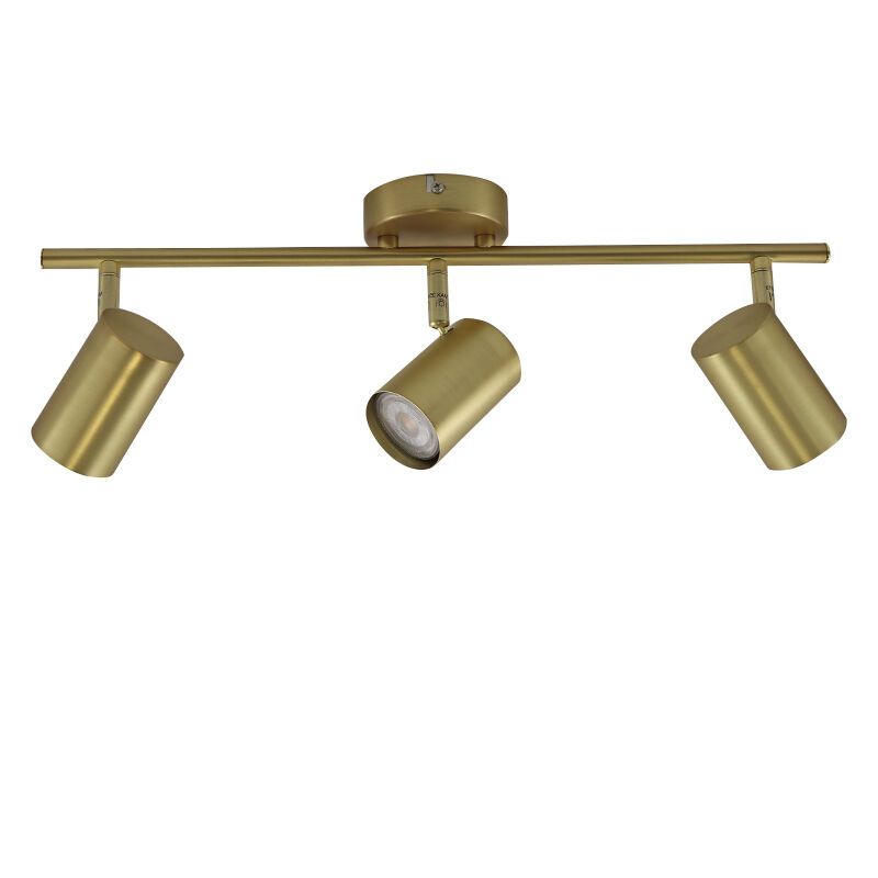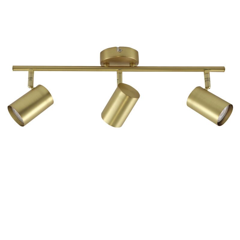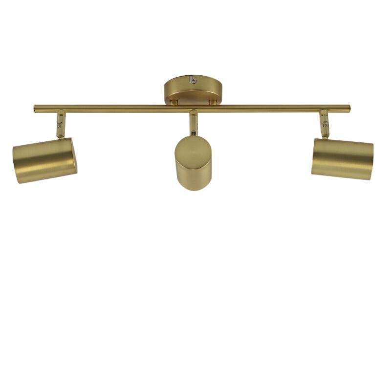 Información de producto Potencia máxima 35 Voltaje de suministro 220-240V Número de luces 3 Tipo de casquillo GU10 Información de producto Incluyendo luz No Anchura en cm 9 Anchura de placa de montaje 9 Altura en cm 17 Altura de placa de montaje 2.5 Longitud en cm 48.3 Longitude de placa de montaje 9 Regulable Si (no incluido) Garantía 2 años Grado de protección IP IP20 (a prueba de polvo) Color Latón Material Metal Estilo Moderno Número de articulo Q79596 - Inicio