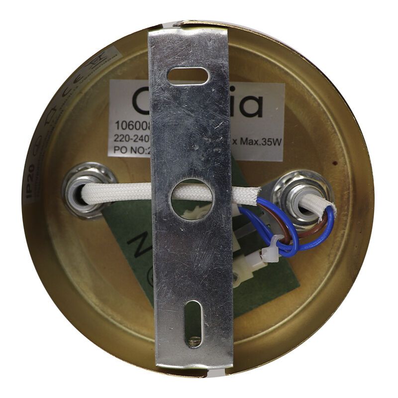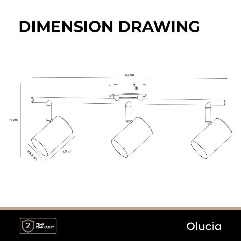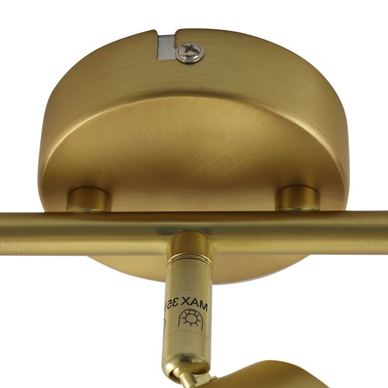 El foco de techo moderna Elena es de color latón y está de hecha de metal. El foco de techo moderna se suministra sin fuentes de luz a juego. Esta lámpara necesita 3 fuentes de luz con casquillos GU10. La potencia máxima de las fuentes de luz no debe exceder los 35W por lámpara.