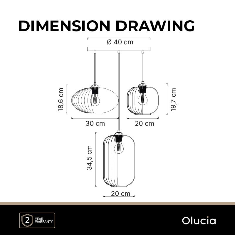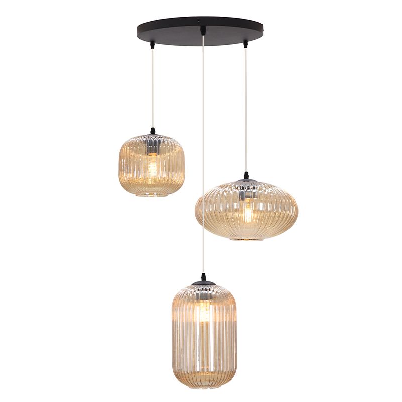 La lámpara colgante retro Charlois es de color ámbar y está de hecha de vidrio. La lámpara colgante retro se suministra sin fuentes de luz a juego. Esta lámpara necesita 3 fuentes de luz con casquillos E27. La potencia máxima de las fuentes de luz no debe exceder los 40W por lámpara.