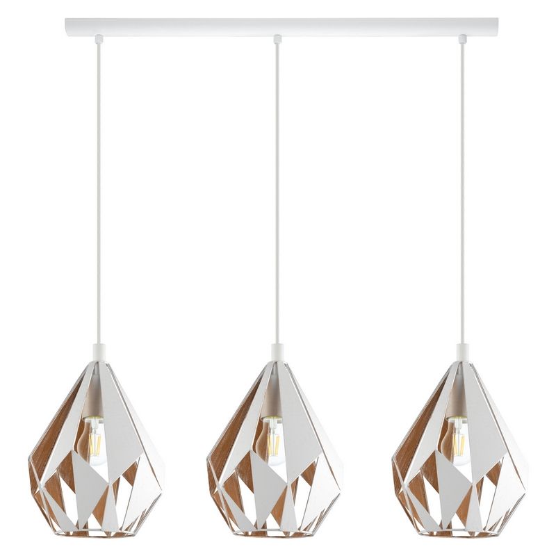 La lámpara colgante diseño blanca Acri está hecha de metal. La lámpara colgante blanca se suministra sin fuentes de luz adecuadas con casquillo E27. La luminaria necesita 3 fuentes de luz LED de ajuste E27 casquillos con una potencia máxima de 60W por luz.