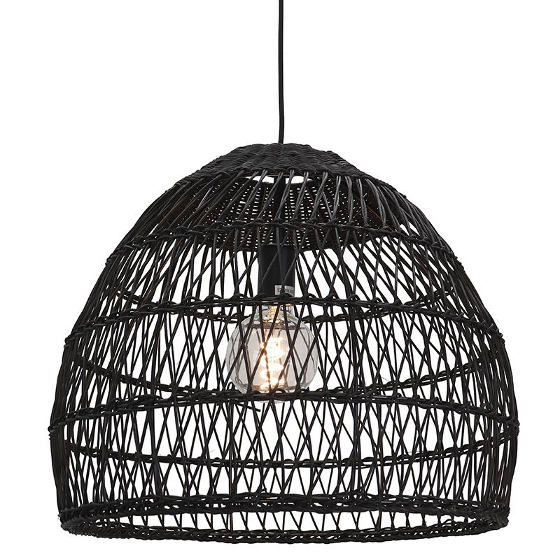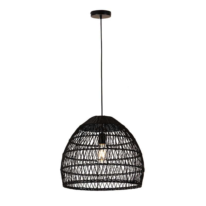 La lámpara colgante de ratán Rosa es de color negro y es de estilo rústico. La lámpara colgante rústica se suministra sin una fuente de luz a juego. El casquillo de la lámpara es un casquillo E27 y la potencia máxima de la fuente de luz no puede superar los 7W.