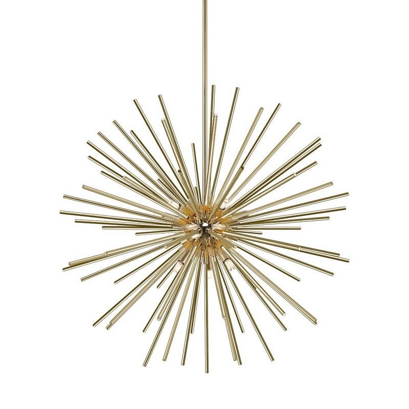 La lámpara colgante diseño Milos es de color oro y está de hecha de vidrio. La lámpara colgante diseño se suministra sin fuentes de luz a juego. Esta lámpara necesita 9 fuentes de luz con casquillos G9. La potencia máxima de las fuentes de luz no debe exceder los 42W por lámpara.