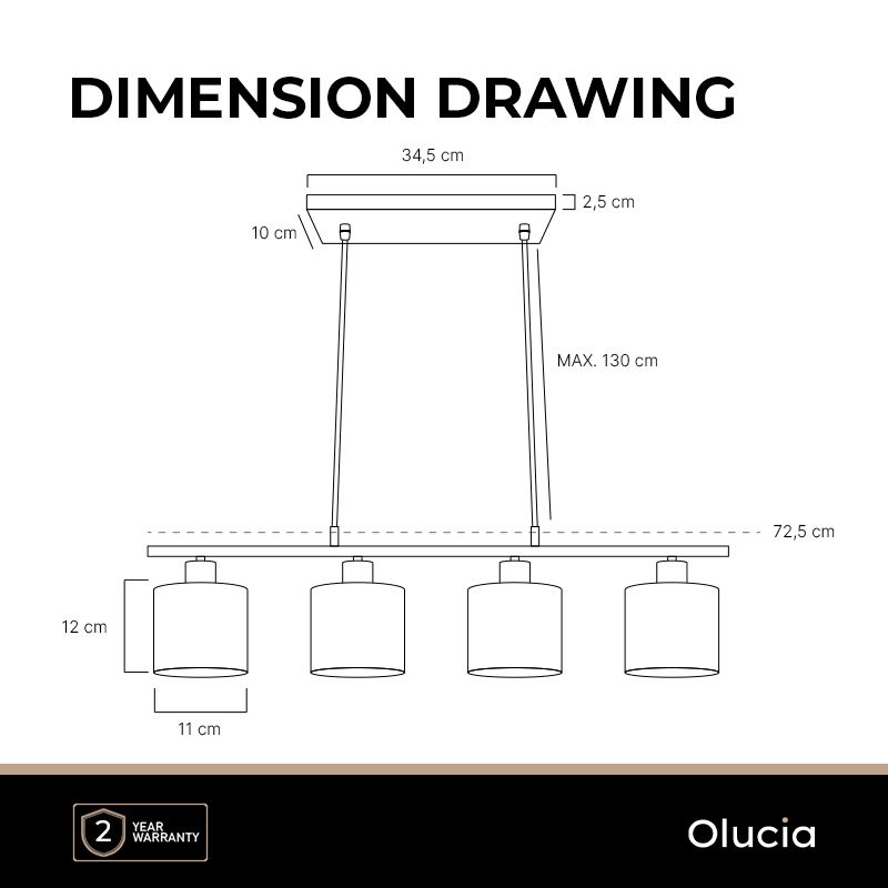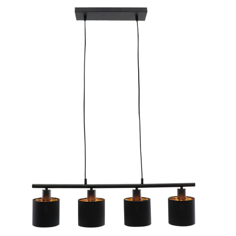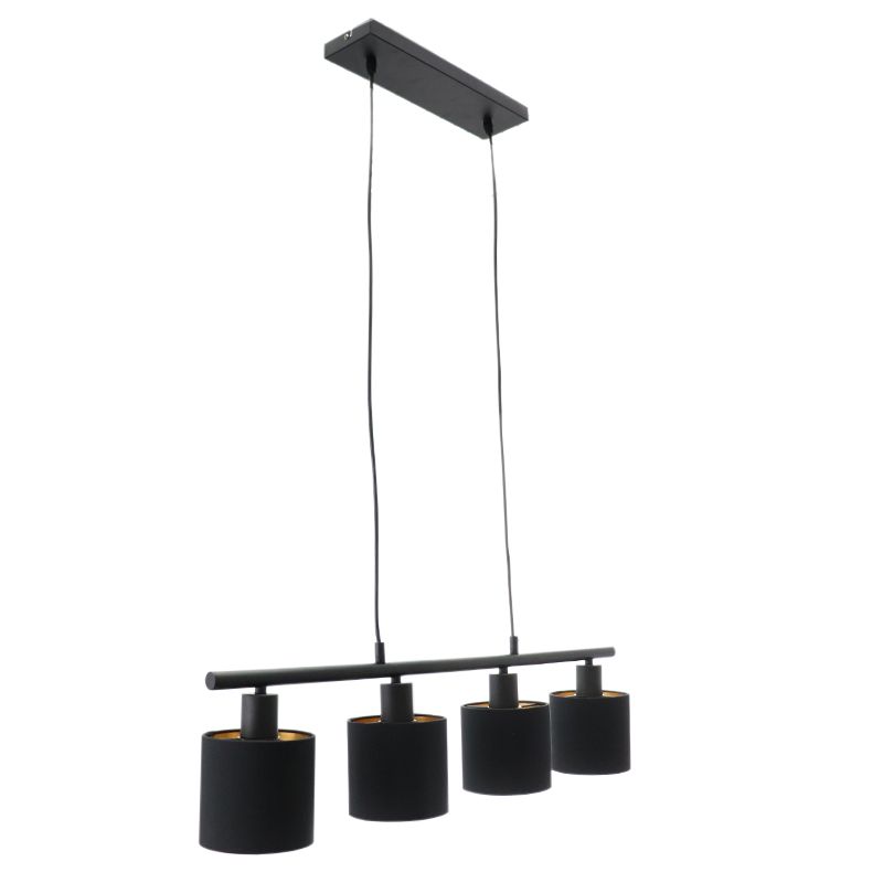 Información de producto Potencia máxima 25 Voltaje de suministro 220-240V Número de luces 4 Tipo de casquillo E14 Información de producto Incluyendo luz No Anchura en cm 72 Anchura de placa de montaje 10 Altura en cm 120 Altura de placa de montaje 2.5 Longitude de placa de montaje 34.5 Regulable Si (no incluido) Garantía 2 años Grado de protección IP IP20 (a prueba de polvo) Color Oro, Negro Material Tela, Aluminio Habitación Mesa de comedor Estilo Moderno Número de articulo Q29278 - Inicio