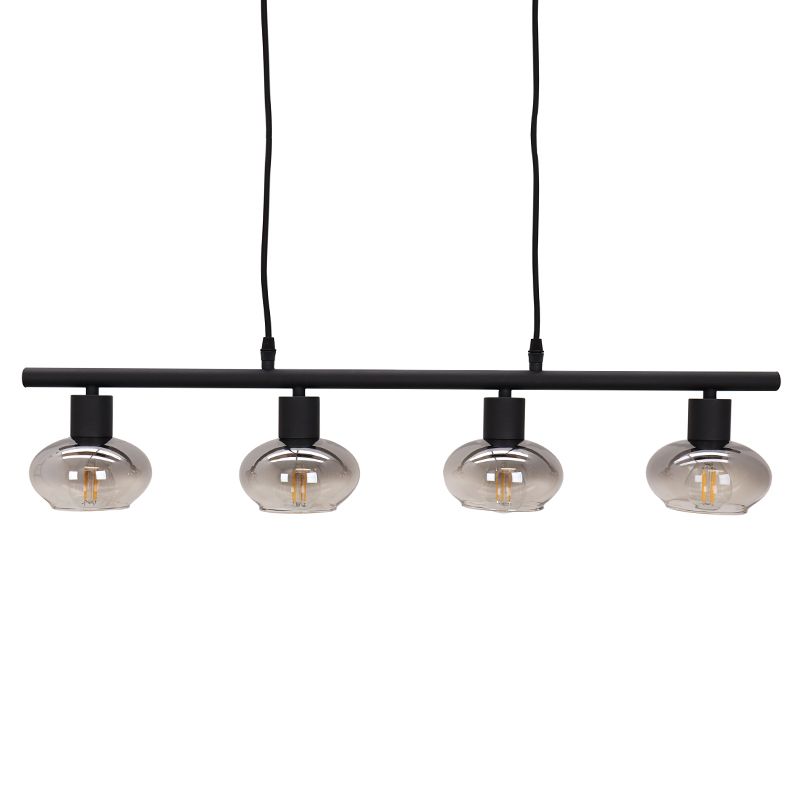 Información de producto Potencia máxima 40 Voltaje de suministro 220-240V Número de luces 4 Tipo de casquillo E14 Información de producto Incluyendo luz No Anchura en cm 12 Anchura de placa de montaje 10 Altura en cm 120 Altura de placa de montaje 2.5 Longitud en cm 73 Longitude de placa de montaje 34 Regulable Si (no incluido) Garantía 2 años Grado de protección IP IP20 (a prueba de polvo) Color Gris, Negro Material Metal, Vidrio Estilo Diseño Número de articulo Q79434 - Inicio