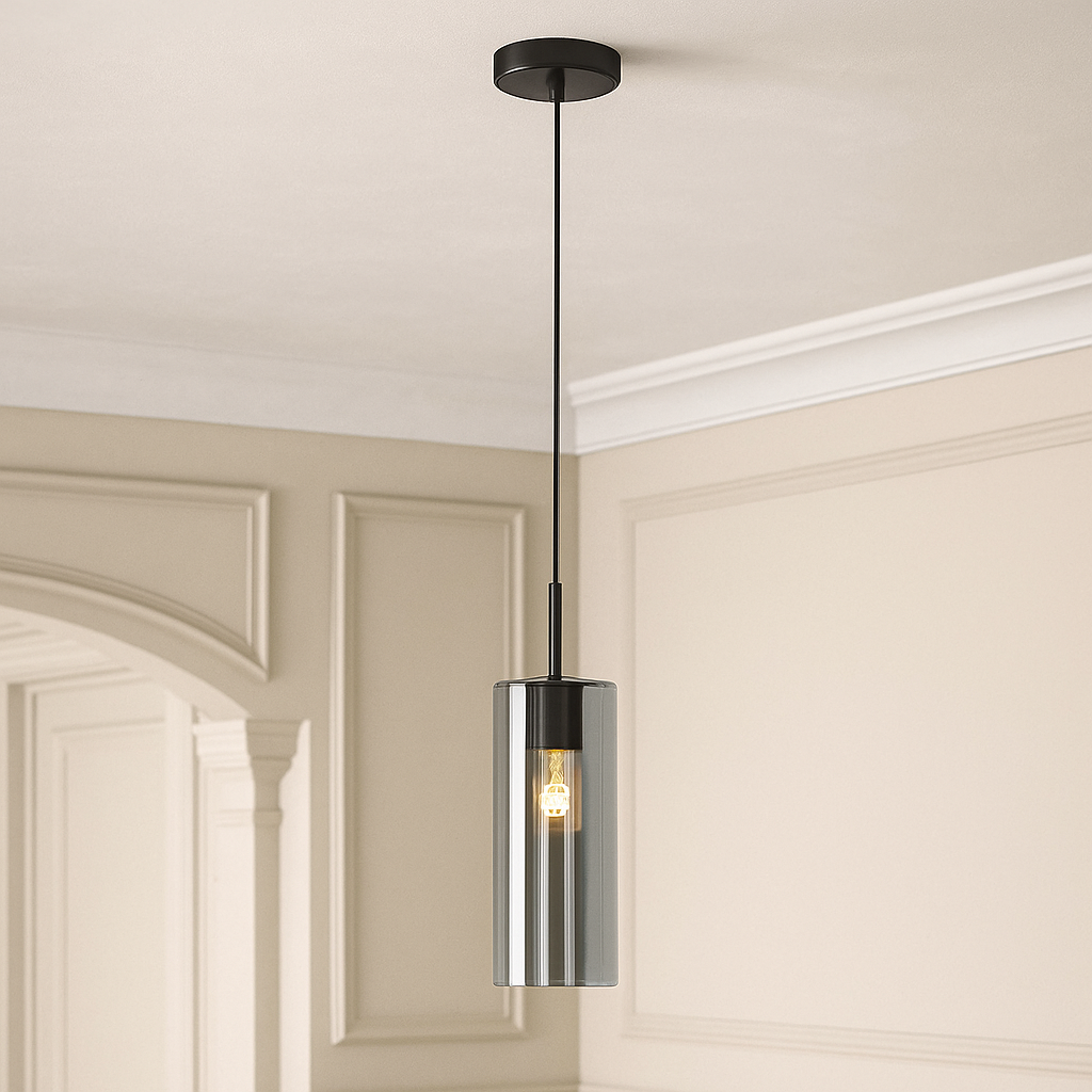 Lámpara colgante negra moderna, Huy- D: 10 cm, Al: 150 cm
