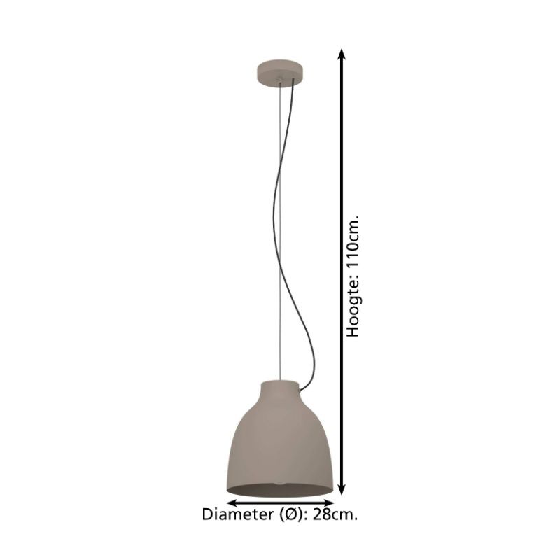 La lámpara colgante industrial gris pardo Thijs está hecha de aluminio. La lámpara colgante gris pardo se suministra sin fuente de luz adecuada con casquillo E27. El dispositivo puede alojar fuentes de luz LED con una potencia máxima de 40W.