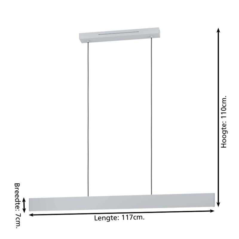 • 117 cm largo, 7 cm ancho y 110 cm alto