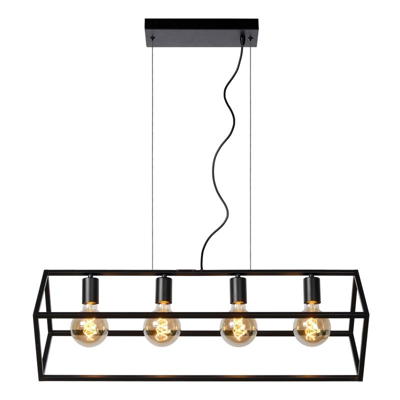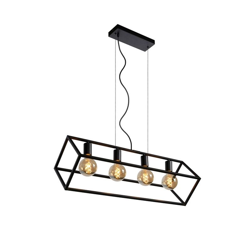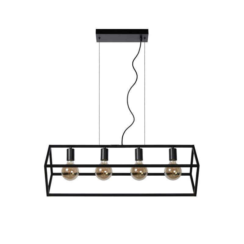 La lámpara colgante negra Fabian es de estilo moderno y está hecha de metal. La lámpara colgante moderna tiene 4 casquillos E27 y se suministra sin 4 fuentes de luz a juego. La lámpara puede alojar fuentes de luz con una potencia máxima de 40W por lámpara.