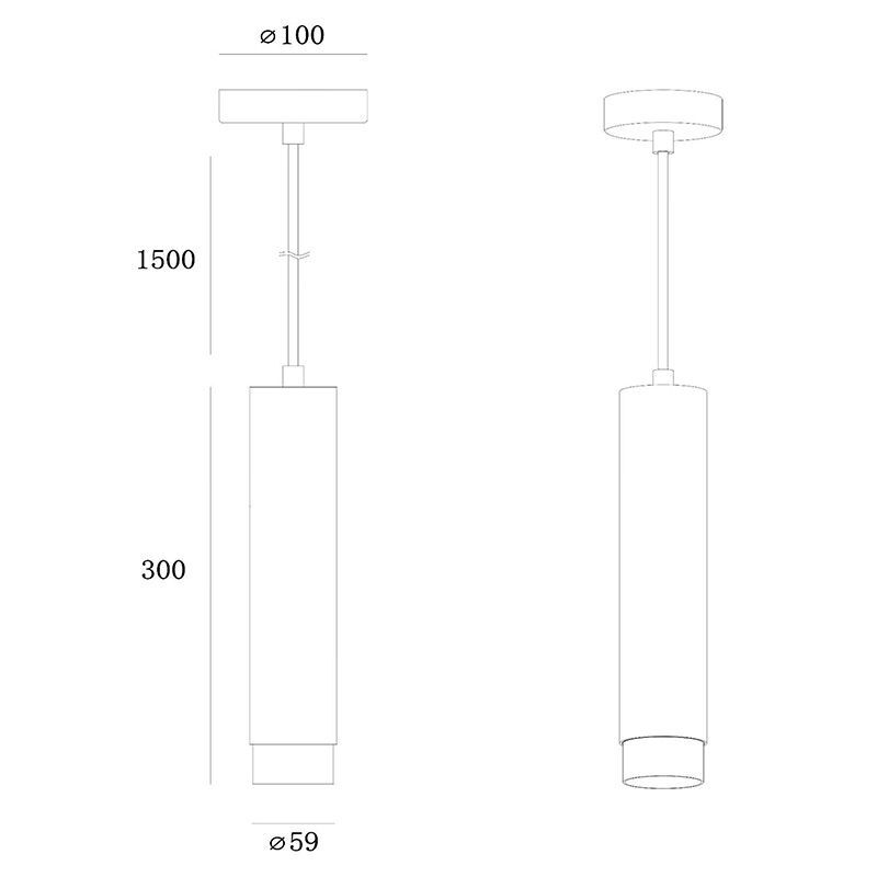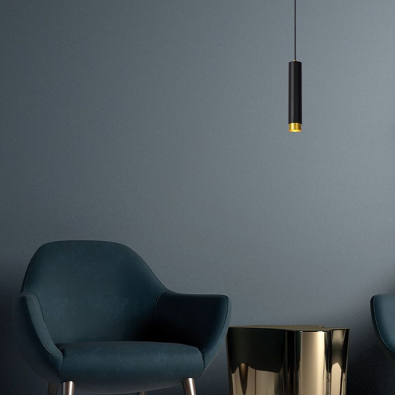 Lámpara colgante moderna negra, Lionel- D: 6,5 cm, Altura: 180 cm