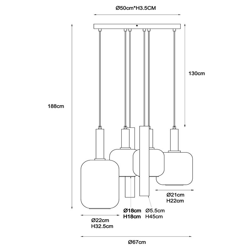 Información de producto Potencia máxima 40 Voltaje de suministro 220-240V Número de luces 6 Tipo de casquillo E27 Información de producto Incluyendo luz No Anchura en cm 65 Diámetro en cm 65 Peso en kg 6.8 Altura en cm 150 Longitud en cm 65 Regulable Si (no incluido) Garantía 2 años Grado de protección IP IP20 (a prueba de polvo) Color Oro, Gris, Negro Material Metal, Vidrio Estilo Moderno Número de articulo Q39386 - Inicio