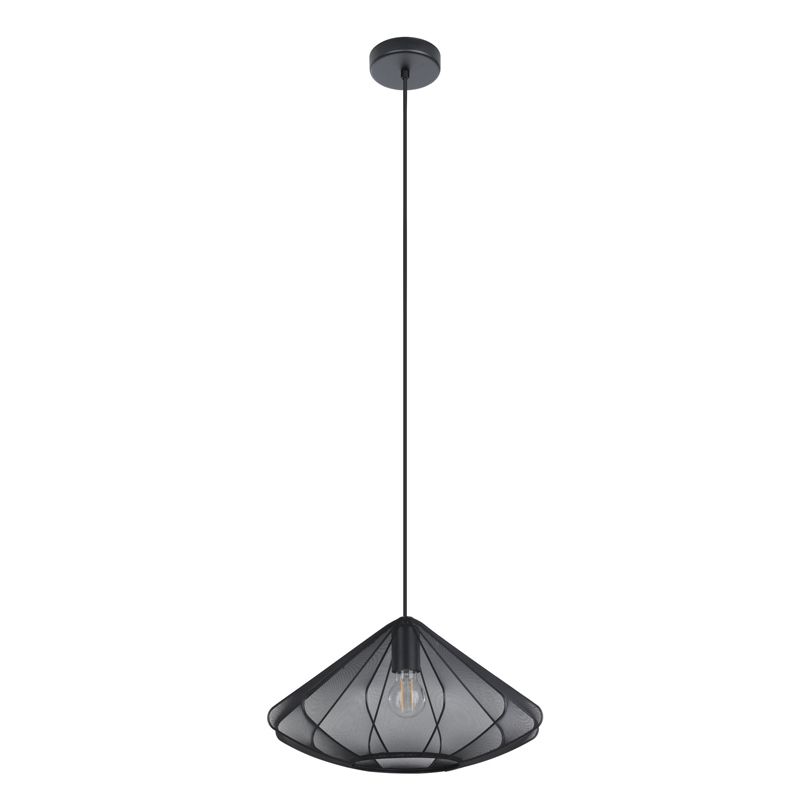 La lámpara colgante industrial negra Agnese está hecha de acero. La lámpara colgante negra se suministra sin fuente de luz adecuada con casquillo E27. El dispositivo puede alojar fuentes de luz LED con una potencia máxima de 40W.