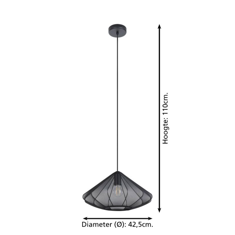 Lámpara colgante negra de acero, Yvette- D: 38 cm, Altura: 110 cm