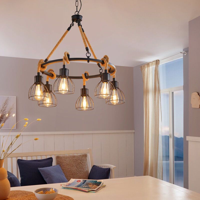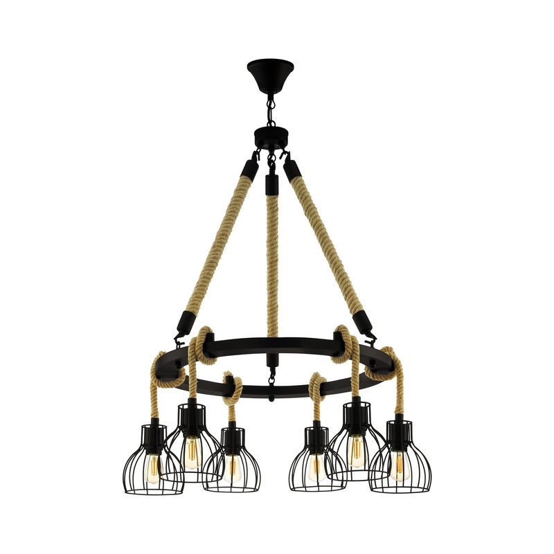 Información de producto Potencia máxima 28 Voltaje de suministro 220-240V Número de luces 6 Tipo de casquillo E27 Información de producto Incluyendo luz No Anchura en cm 76 Diámetro en cm 76 Peso en kg 6.133 Altura en cm 109 Regulable Si (no incluido) Garantía 2 años Grado de protección IP IP20 (a prueba de polvo) Color Negro Material Acero, Cuerda Estilo Industrial Número de articulo Q31116 - Inicio