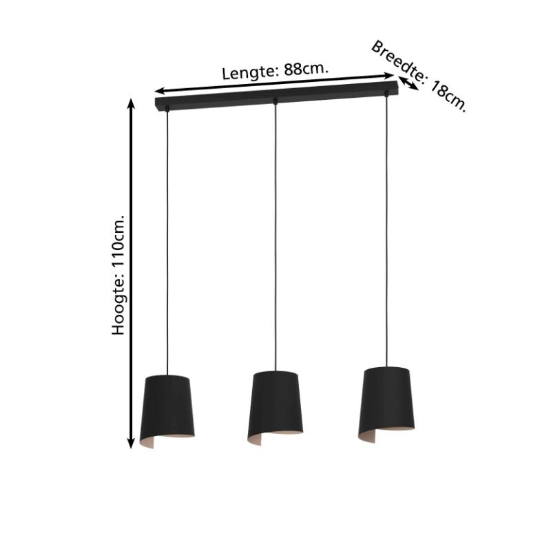 La lámpara colgante rústica negra Vincenzo está hecha de aluminio. La lámpara colgante negra se suministra sin fuentes de luz adecuadas con casquillo E27. La luminaria necesita 3 fuentes de luz LED de ajuste E27 casquillos con una potencia máxima de 40W por luz.