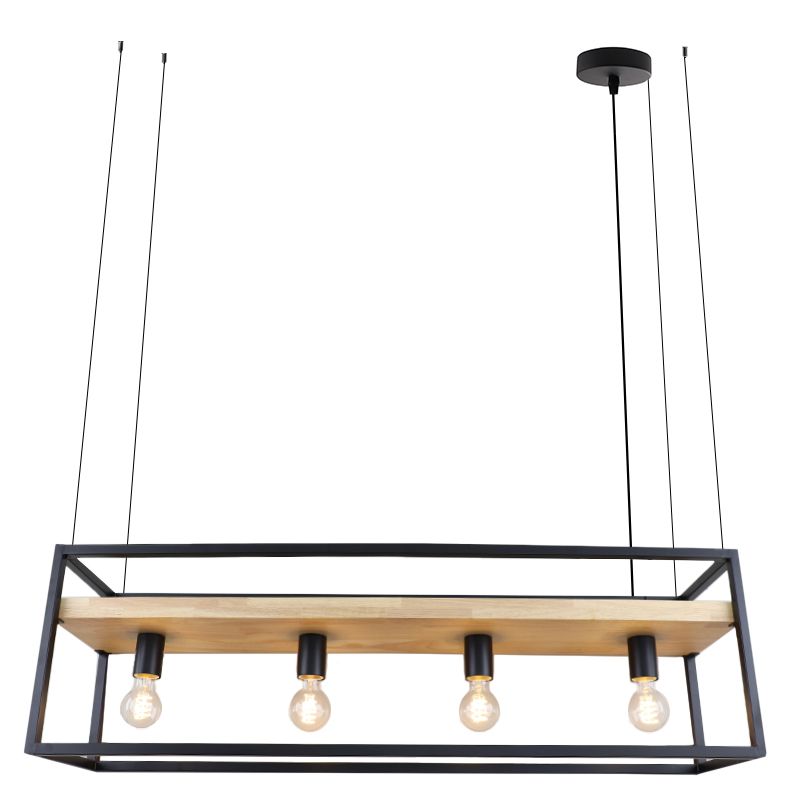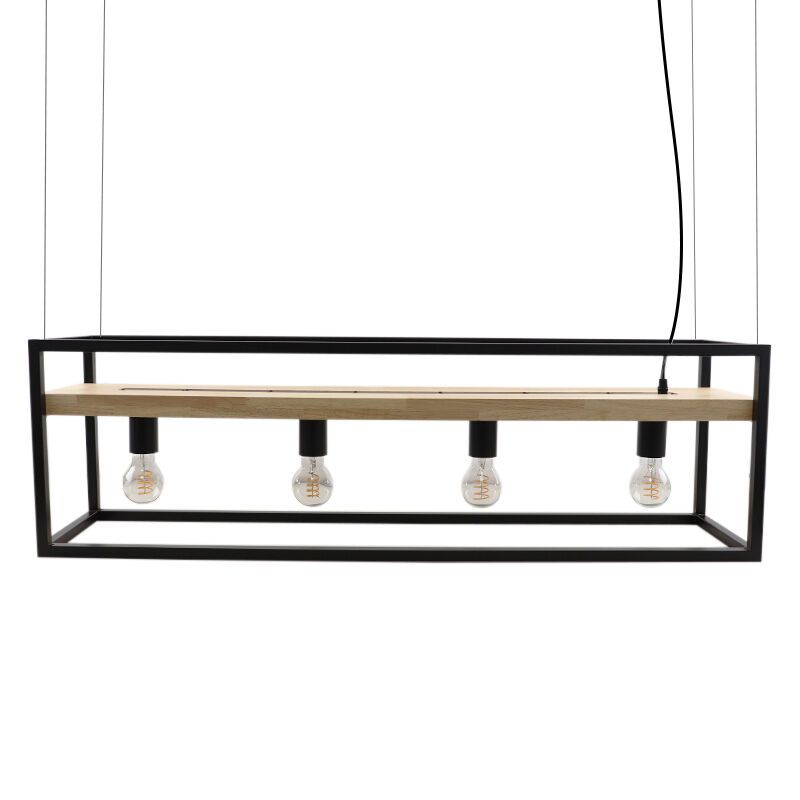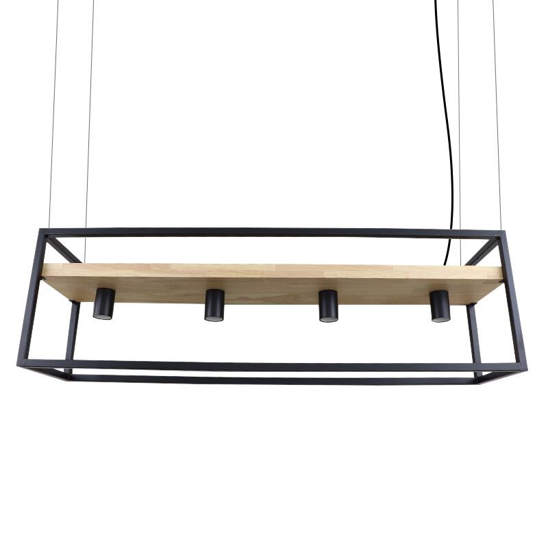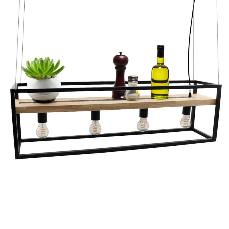 Información de producto Potencia máxima 40 Voltaje de suministro 220-240V Número de luces 4 Tipo de casquillo E27 Información de producto Incluyendo luz No Anchura en cm 22 Altura en cm 130 Longitud en cm 100 Regulable Si (no incluido) Garantía 2 años Grado de protección IP IP20 (a prueba de polvo) Color Marrón, Negro Material Madera, Aluminio Habitación Mesa de comedor Estilo Industrial Número de articulo Q51415 - Inicio