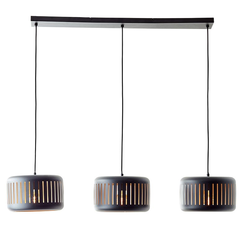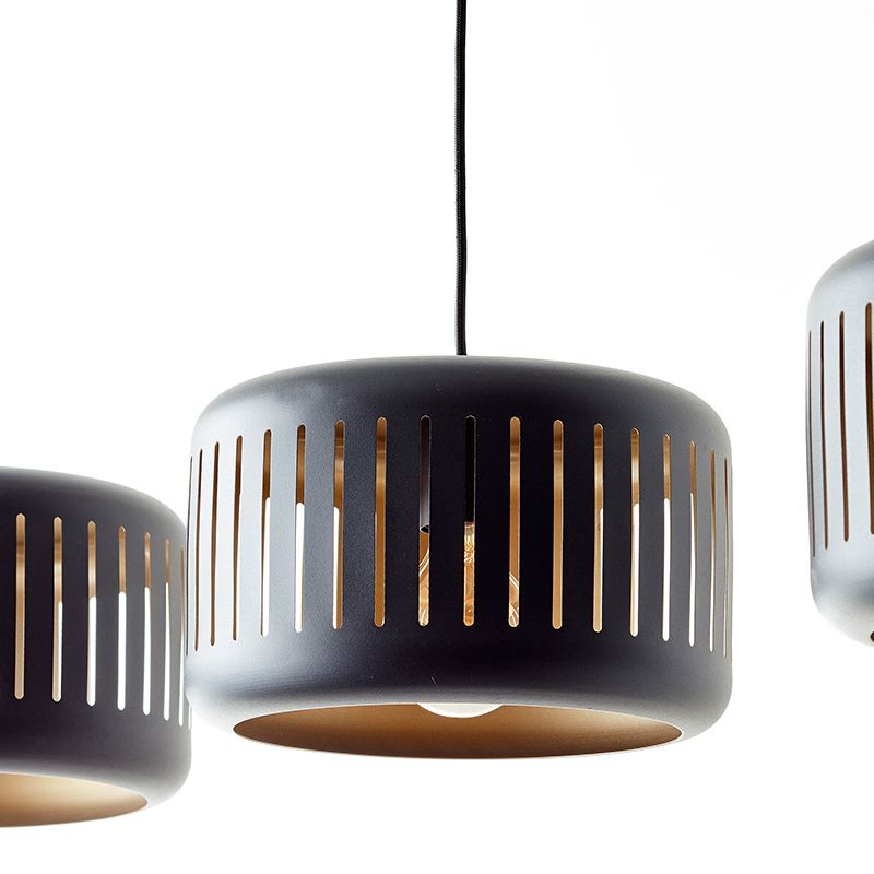 Información de producto Potencia máxima 60 Voltaje de suministro 220-240V Número de luces 3 Tipo de casquillo E27 Información de producto Incluyendo luz No Anchura en cm 110 Peso en kg 0.09 Altura en cm 120 Longitud en cm 27 Regulable Si (no incluido) Garantía 2 años Grado de protección IP IP20 (a prueba de polvo) Color Oro, Negro Material Metal Estilo Industrial Número de articulo Q32667 - Inicio