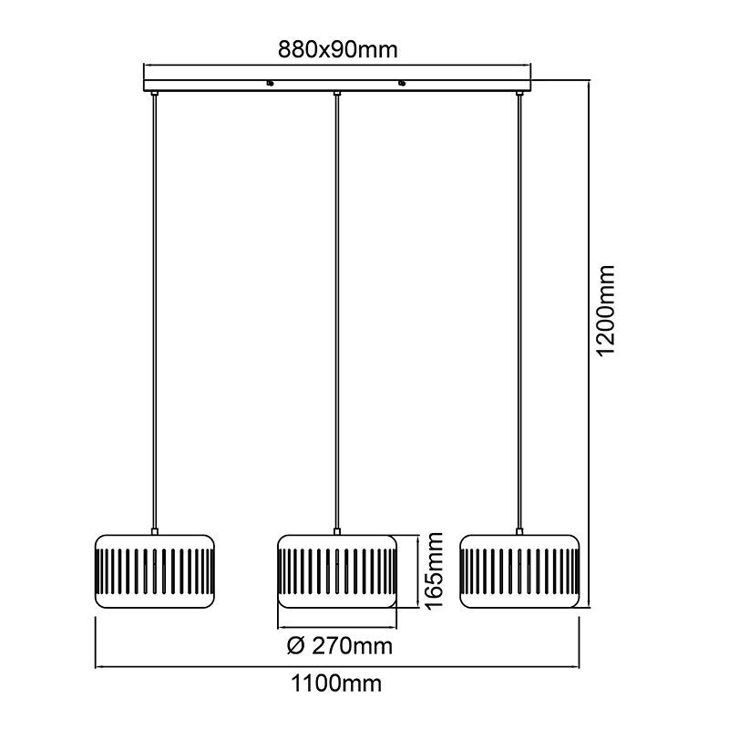 La lámpara colgante industrial Veronika es de color negro y está de hecha de metal. La lámpara colgante industrial se suministra sin fuentes de luz a juego. Esta lámpara necesita 3 fuentes de luz con casquillos E27. La potencia máxima de las fuentes de luz no debe exceder los 60W por lámpara.