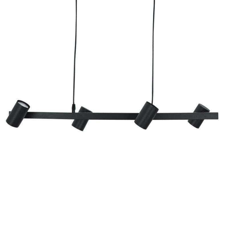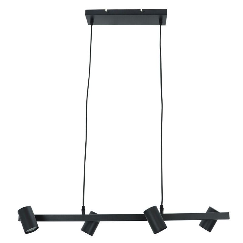 La lámpara colgante moderna Carlos es de color negro y está de hecha de aluminio. La lámpara colgante moderna se suministra sin fuentes de luz a juego. Esta lámpara necesita 4 fuentes de luz con casquillos GU10. La potencia máxima de las fuentes de luz no debe exceder los 5W por lámpara.