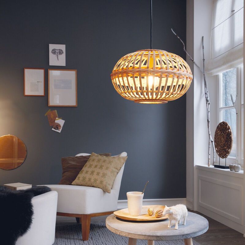 Special Price 74,99 PVPR: Regular Price 89,995-8 días laborables Lámpara colgante de madera marrón, Joyca- D: 18 cm, Altura: 110 cm