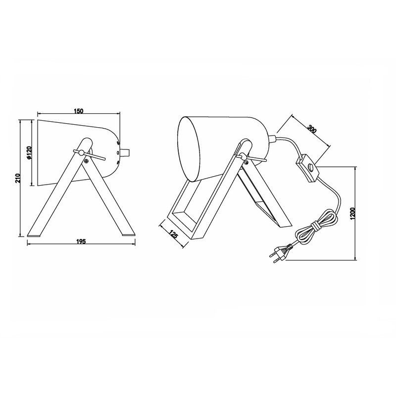 Esta lámpara de mesa de madera gris, Sacha, tiene las siguientes especificaciones: