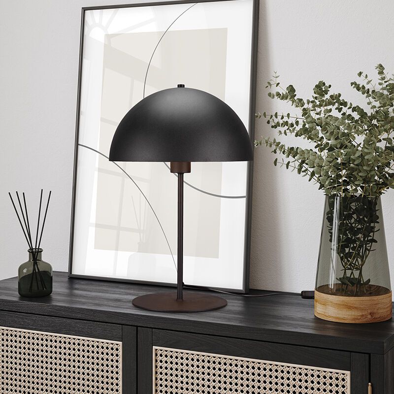 La lámpara de mesa negra Fransisca es de estilo moderno y está hecha de metal. La lámpara de mesa moderna tiene casquillo E27 y se suministra sin fuente de luz a juego. La lámpara puede alojar fuentes de luz con una potencia máxima de 40W.