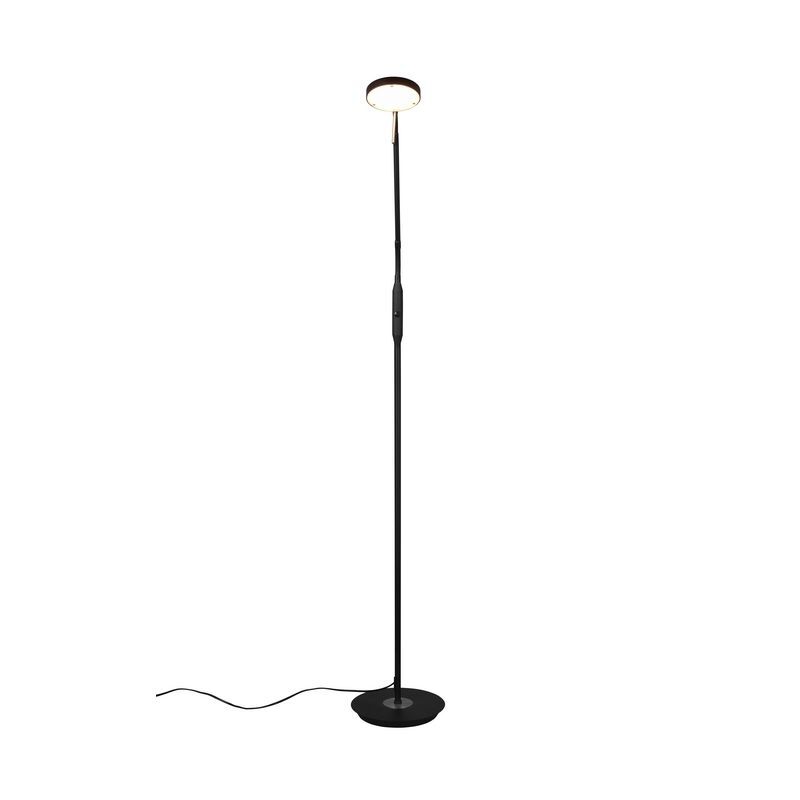 - Lámpara de pie de lectura moderna negra, Bilge, 12W, ajustable entre luz blanco cálido y frío LED, con regulador táctil