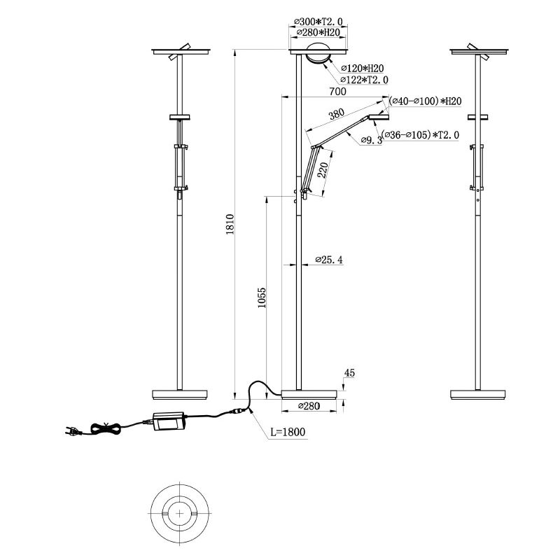 Información de producto Potencia máxima 32 Voltaje de suministro 220-240V Número de luces 1 Número de lúmenes 4000 Información de producto Color de luz Color de luz ajustable Tipo de casquillo LED integrado Tipo de bombilla incluida LED integrado Número esperado de horas de vida útil 30000 Incluyendo luz Si, integrado Anchura en cm 30 Diámetro en cm 30 Peso en kg 6.23 Altura en cm 181 Regulable Si (incluido) Garantía 2 años Grado de protección IP IP20 (a prueba de polvo) Color Níquel Material Metal Con interruptor Si Con cable y enchufe Si Habitación Salón, Habitación Estilo Moderno Tipo de interruptor Interruptor táctil de encendido/apagado en el producto Número de articulo Q25659 - Inicio