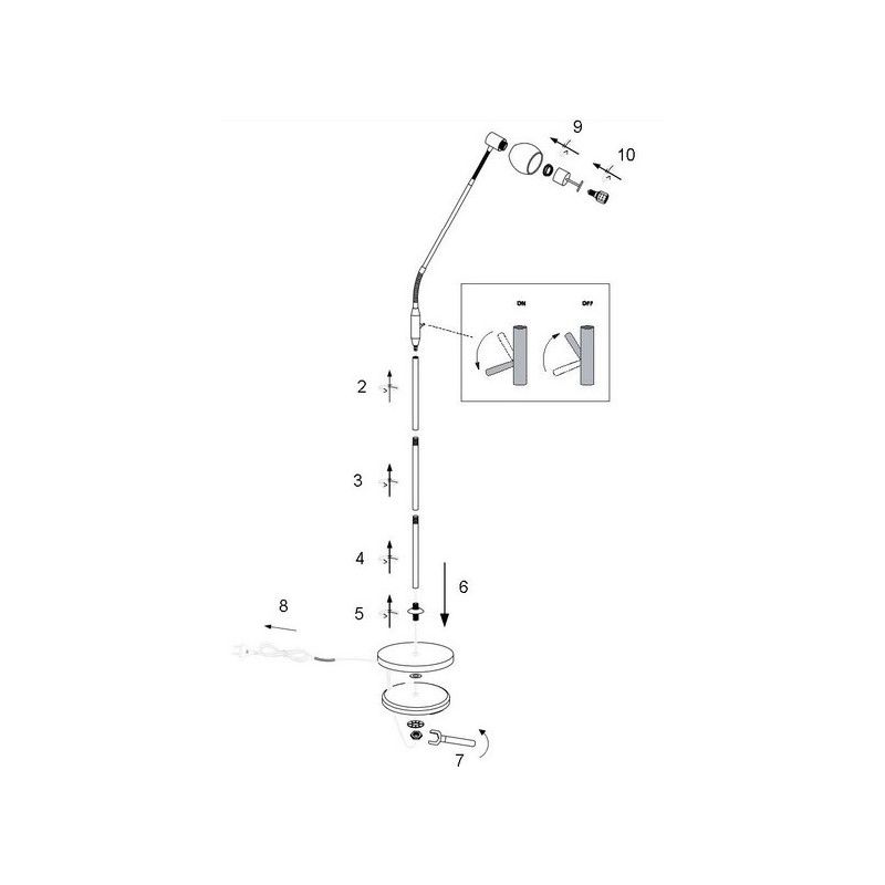 La lámpara de pie Jaydah tiene un interruptor de encendido/apagado en el producto con el que puede encender y apagar la lámpara fácilmente.