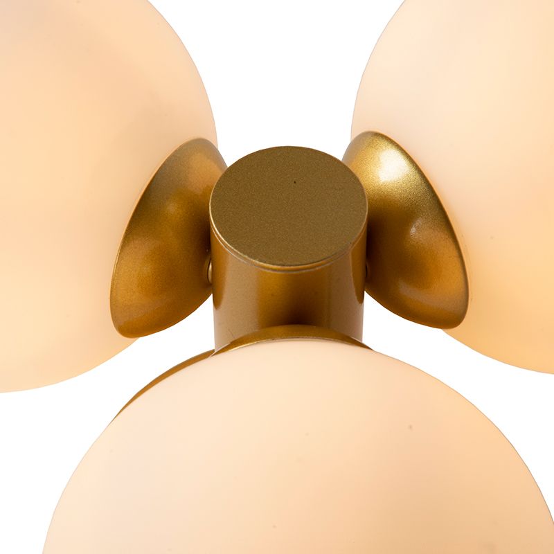 La lámpara de techo baño dorada Trudy es de estilo moderno y está hecha de vidrio. La lámpara de techo baño moderna tiene 3 casquillos G9 y se suministra sin 3 fuentes de luz a juego. La lámpara puede alojar fuentes de luz con una potencia máxima de 40W por lámpara.