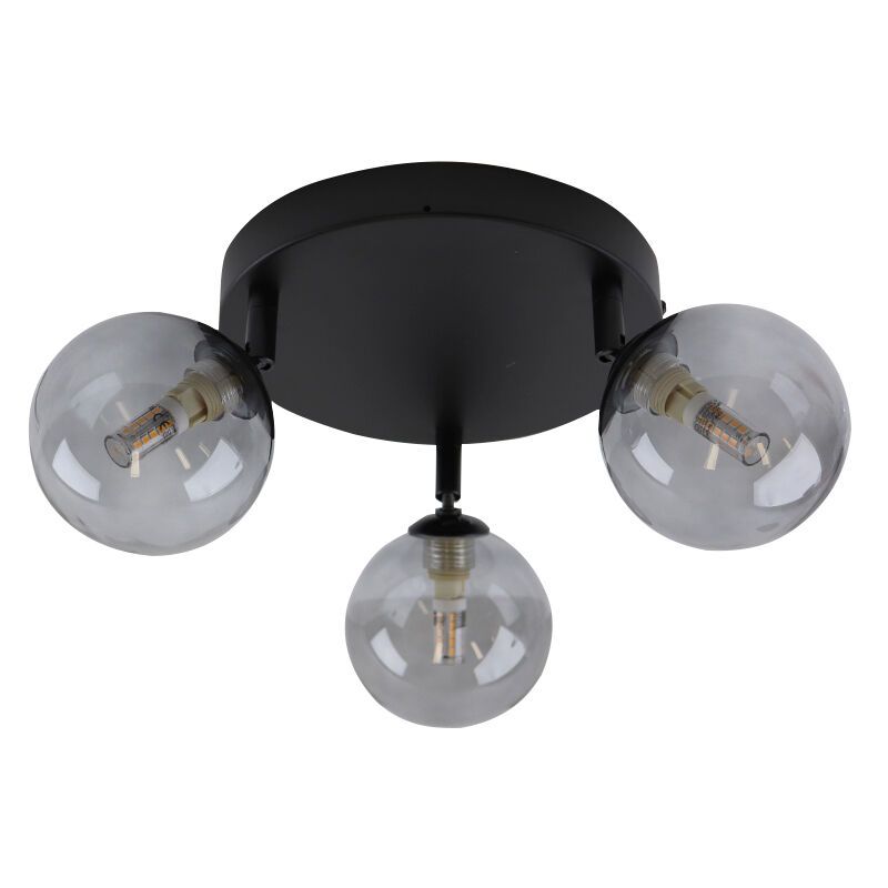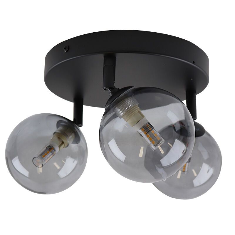 La lámpara de techo baño moderna Amer es de color negro y está de hecha de vidrio. La lámpara de techo baño moderna se suministra sin fuentes de luz a juego. Esta lámpara necesita 3 fuentes de luz con casquillos G9. La potencia máxima de las fuentes de luz no debe exceder los 25W por lámpara.