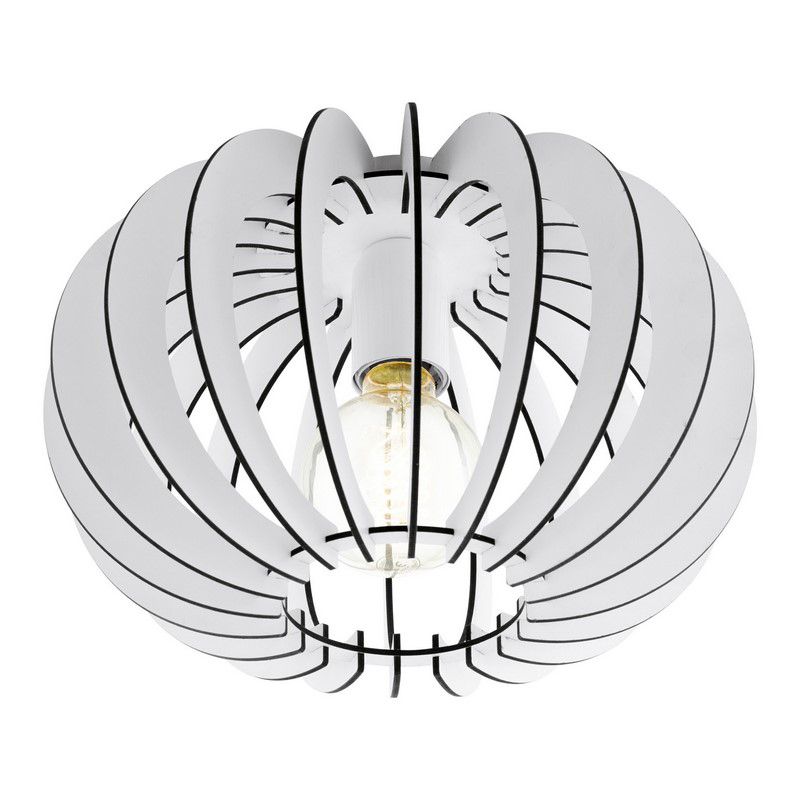 La lámpara de techo diseño blanca Kiran está hecha de madera. La lámpara de techo blanca se suministra sin fuente de luz adecuada con casquillo E27. El dispositivo puede alojar fuentes de luz LED con una potencia máxima de 60W.