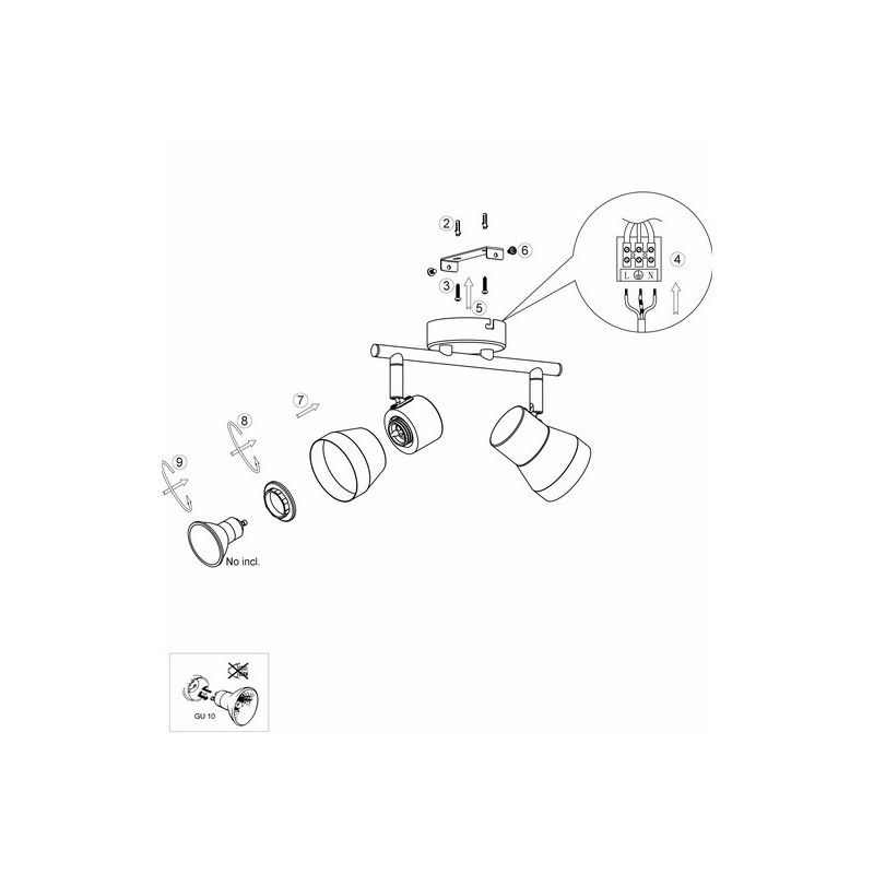• 2 x GU10 casquillo (excl. bombillas)