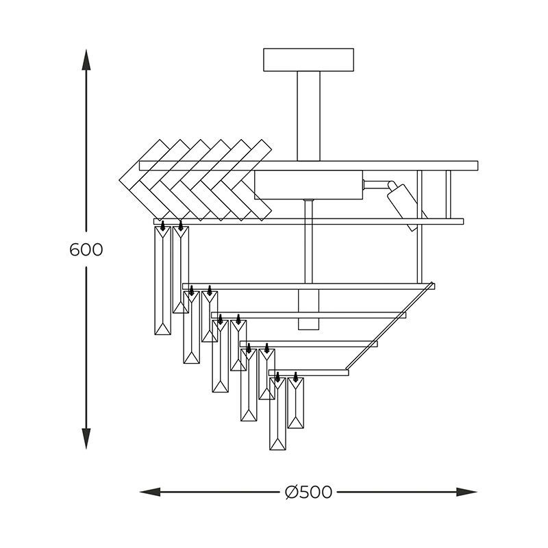La lámpara de techo diseño Jetske es de color oro y está de hecha de vidrio. La lámpara de techo diseño se suministra sin fuentes de luz a juego. Esta lámpara necesita 9 fuentes de luz con casquillos E14. La potencia máxima de las fuentes de luz no debe exceder los 40W por lámpara.