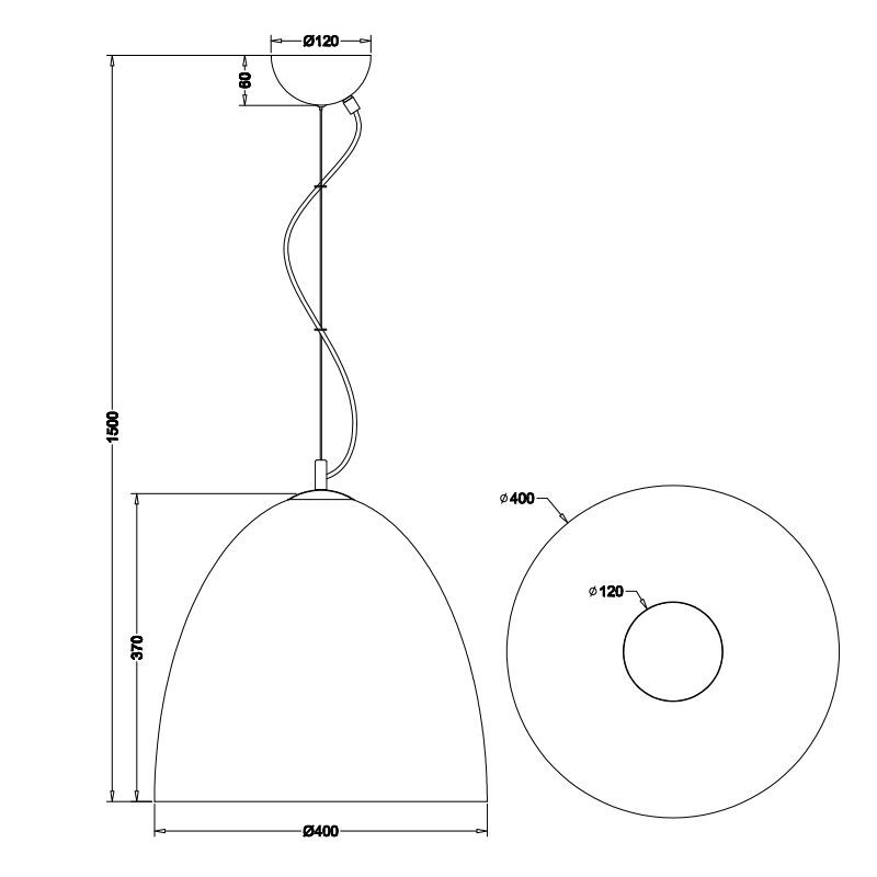 Lámpara media esfera moderna negra, Ingmar- D: 25 cm, Altura: 150 cm