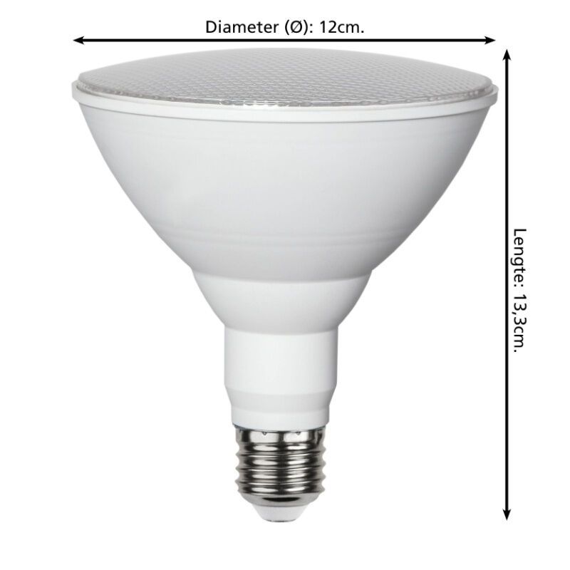 Con esta LED PAR lámpara para plantas E27, eliges una lámpara LED de alta calidad y eficiente en energía. La bombilla LED PAR E27 tiene una duración promedio de 15000 horas y una salida de luz de 1200 lúmenes. Con una lámpara LED, ahorras energía debido a su bajo consumo de energía. Esta bombilla LED PAR E27 tiene una potencia de 16 vatios, reemplazando a una bombilla incandescente tradicional de aproximadamente 144 vatios.